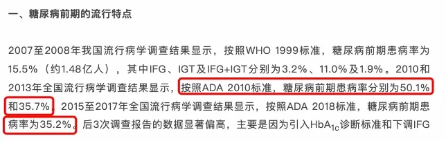 我國2型糖尿病患病率是11%左右,也就是10個人裏有1個是確診了糖尿病,聽起來很恐怖對不對,但還有更恐怖的,處於「糖尿病前期」的比例高達35%-50.1%(ADA2022年標準),平均兩三個人裏有1個。