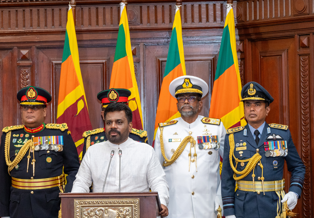 2024年9月23日,斯里蘭卡當選總統阿努拉·迪薩納亞克在斯總統秘書處宣誓就職。