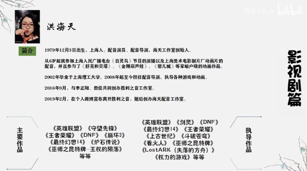 負責配音的這幾位可都是專業選手,大家可能比較熟悉洪海天,她就是給英雄聯盟小魚人、王者榮耀妲己配音那位。