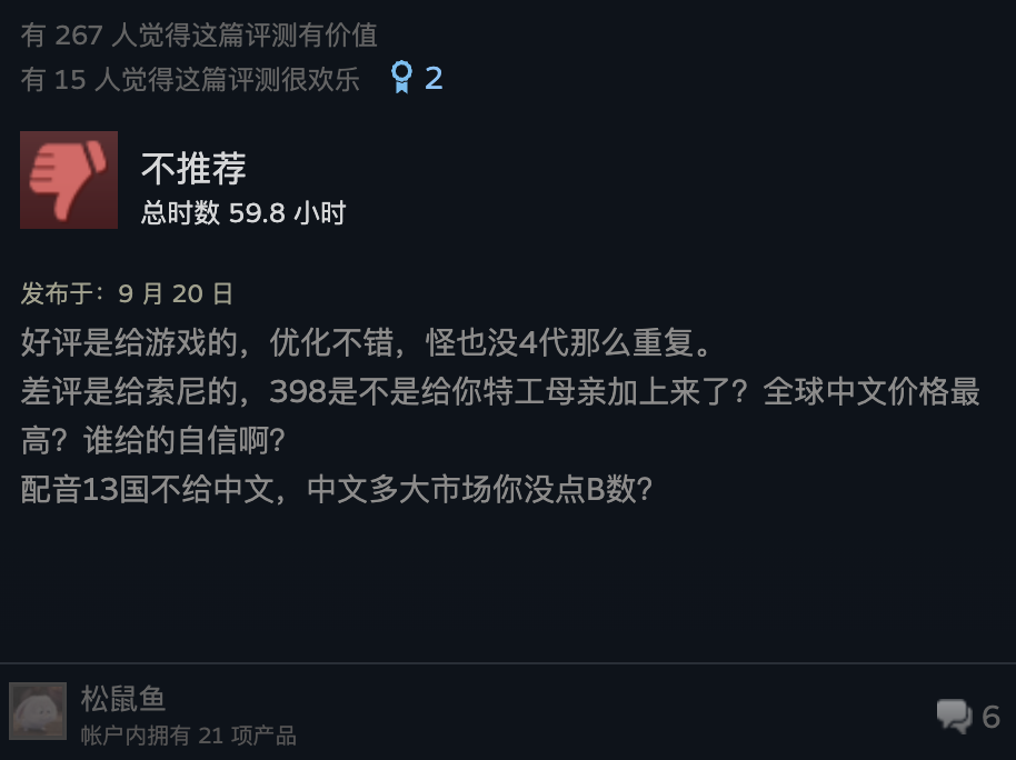 沒中文配音只是個大前提,真正讓玩家們破防的,是沒中配的戰神 5 在國區售價還賊貴,高達 398 元人民幣。