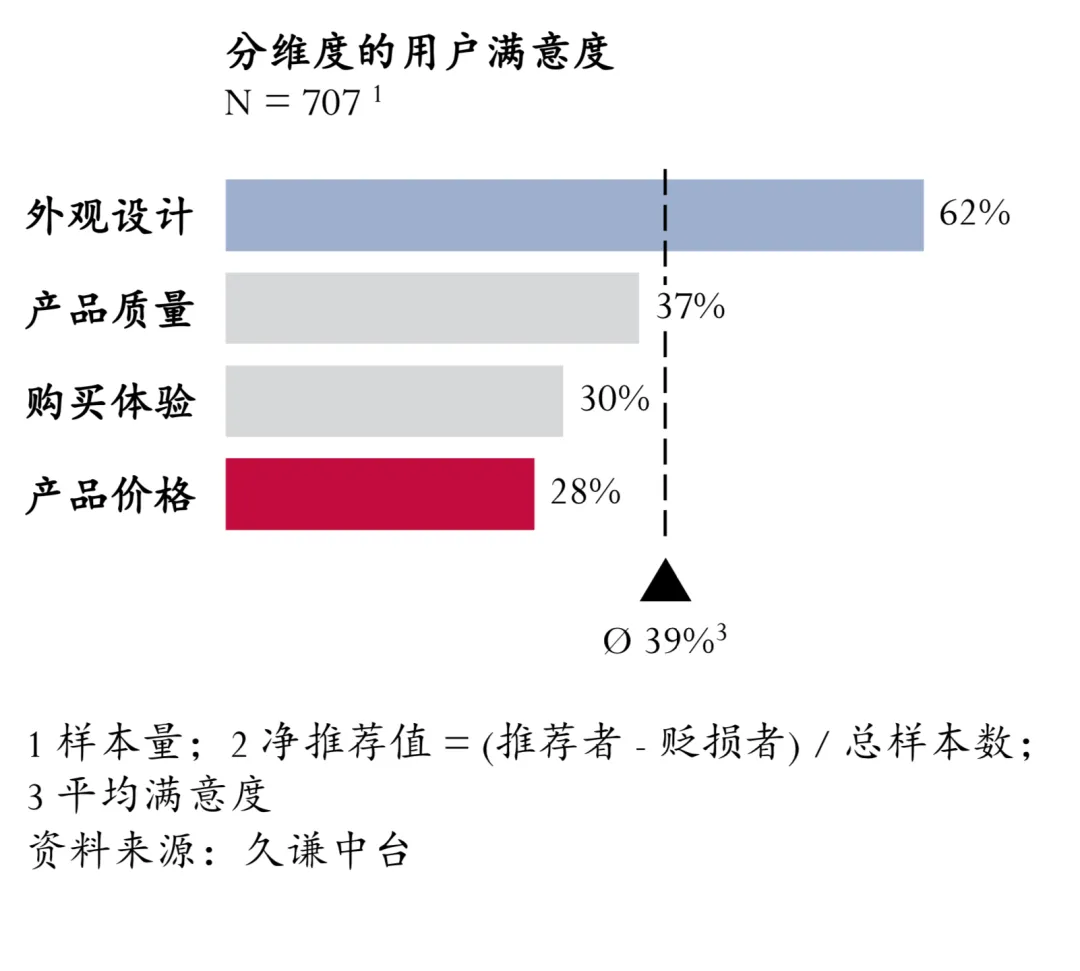 負面評價(N=34):消費者對其外觀有諸多反饋。雖然整體評價尚可,但也存在一些問題。例如,有用户反映產品的左下角有壓痕,手提帶斷了,甚至有些產品充棉不足,導致頭身比例不協調。此外,部分消費者認為產品的顏色過深,包裝盒背面花花的設計不夠美觀,且價格較高。