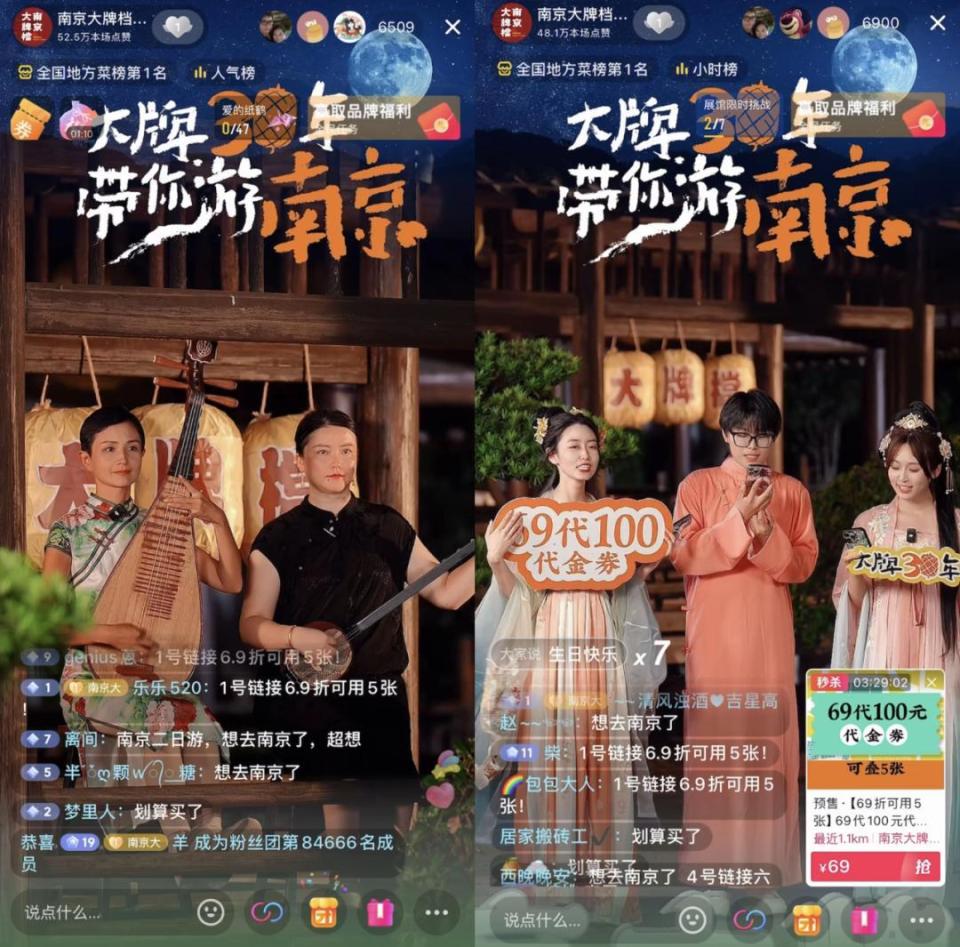 覆盤這場卷出了花樣的直播,一邊是金陵的夜色美景,一邊是蘇州評彈的絃索叮咚與軟糯腔調,人景合一間,不僅只是宣傳新品,還自然融入了南京本地文化體驗,沉浸感十足的直播體驗也給南京大牌檔帶來了人羣轉化圈層的滲透與突破。