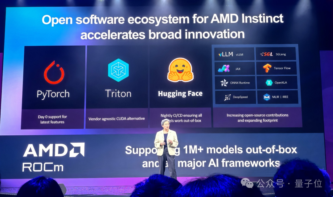 以及在生成式AI方面,蘇媽表示AMD的Instinct MI300X和MI325X加速器也在發揮着不可或缺的作用,並且在生態上,AMD已經支持了超過100萬個模型。