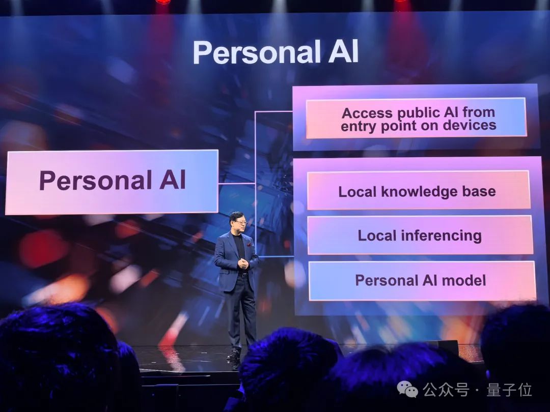 更具體而言,個人AI是指用户的智能設備(如PC),可以選擇像ChatGPT這樣的公共AI;但與此同時,現在隨着AI PC的到來,推理可以通過自然交互的方式在本地運行。
