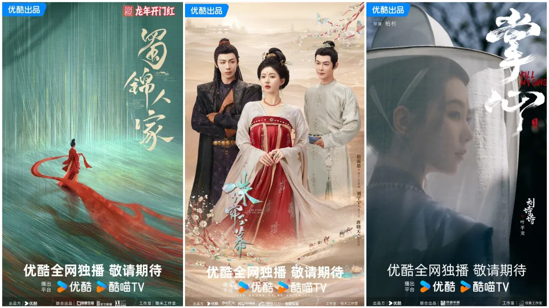 此外,除了藉助超頭部內容拉高市場期待,優酷儲備中的古裝內容還嘗試探索多元的落地視角,《墨雨雲間》《度華年》以及當下熱播的《春花焰》等,也是平台在這一打法下撬動市場的案例。而在儲備內容中,趙露思與劉宇寧二搭的《珠簾玉幕》着眼於商賈視角下的絲綢之路;譚松韻新劇《蜀錦人家》將關注點落在晚唐的蜀錦商戰之上;《掌心》切開江湖遊醫視角、《獻魚》《從善》等則從不同維度詮釋仙俠……