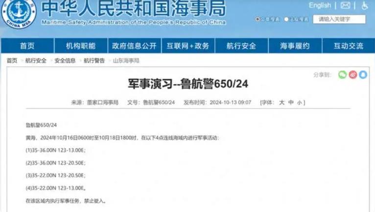 而中國這邊,10月14日至19日邀請巴基斯坦、新加坡、南非、約旦、英國、哈薩克斯坦、加拿大、阿根廷等60餘國駐華武官,赴東部戰區方向參觀訪問。同時中國海事局13日發佈航行警告,10月16日6時至10月18日18時,黃海部分海域進行軍事活動,禁止駛入。中國不允許在半島生戰生亂!