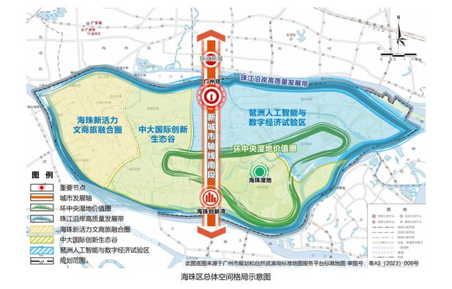 海珠區國土空間總體規劃(2021-2035年)草案顯示,其城市空間格局極富特色,可以説在四大一線城市之中,也是絕無僅有的: