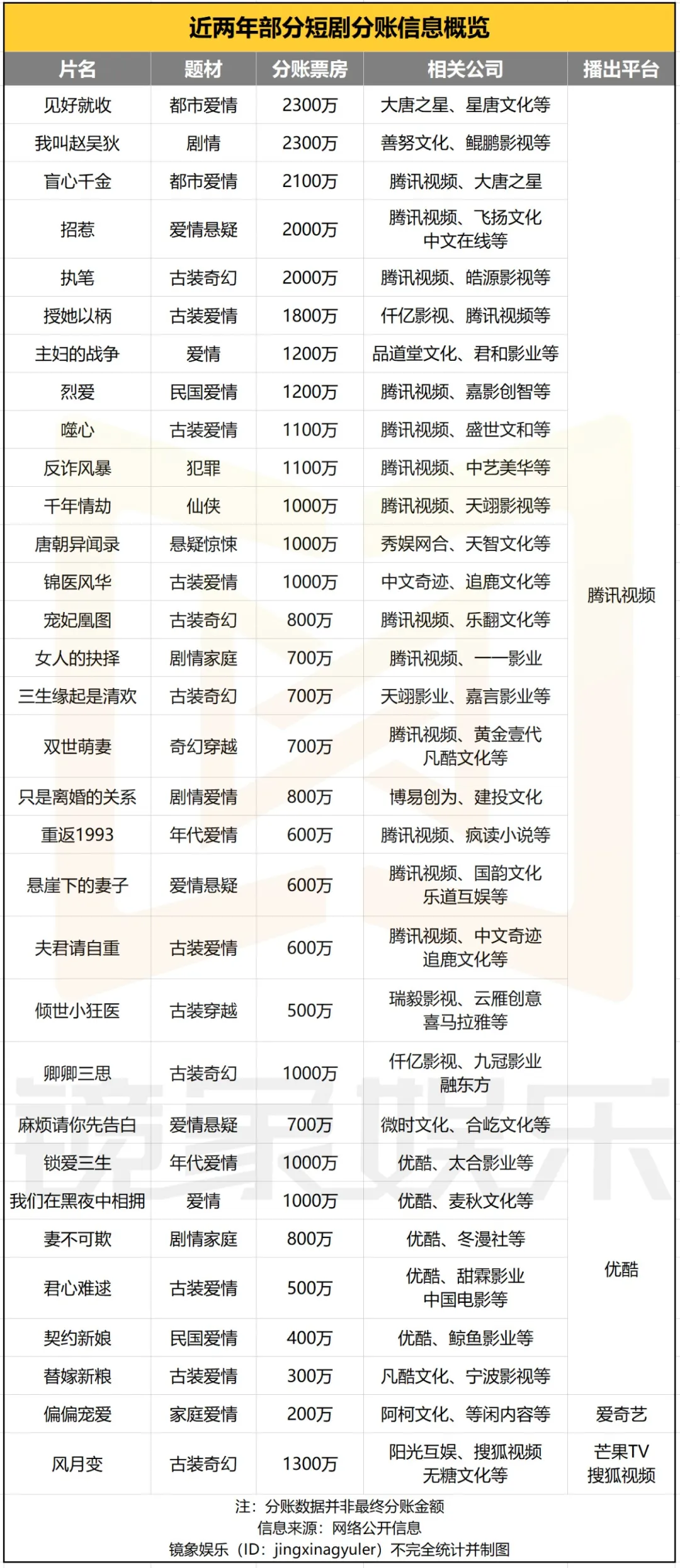 2023年初,騰訊視頻曾首次提出與片方100%分賬(廣告收入部分)的策略,並在會員分賬和廣告分賬之外,根據劇集帶來的有效正價會員開通數,為片方提供950萬-7450萬不等的激勵收入。