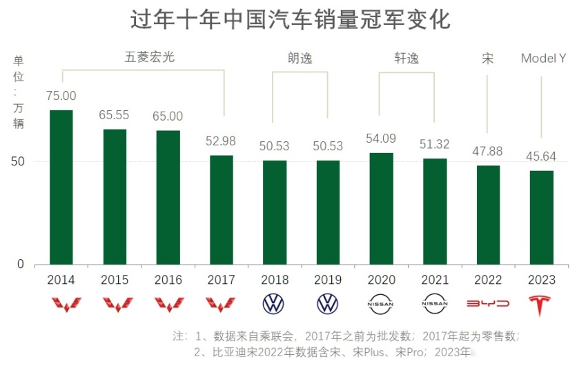過去十年的統計數據顯示,我國最暢銷的汽車車型,先後是五菱宏光、大眾朗逸、日產軒逸、比亞迪宋和特斯拉Model Y。