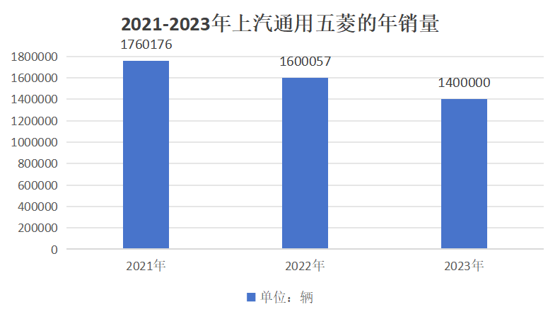 正因如此,上汽通用五菱的年銷量,從2021年的176萬輛下滑到2023年的140萬。