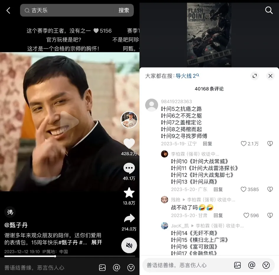 為數不多能夠做成系列的《葉問》,更是從台詞到影像都有熱梗輸送。關於葉師傅從中打到外之後還能打誰,網友的腦洞越開越離譜,某種程度上消解了“功夫高手打洋人”這一套路的歷史沉重感。