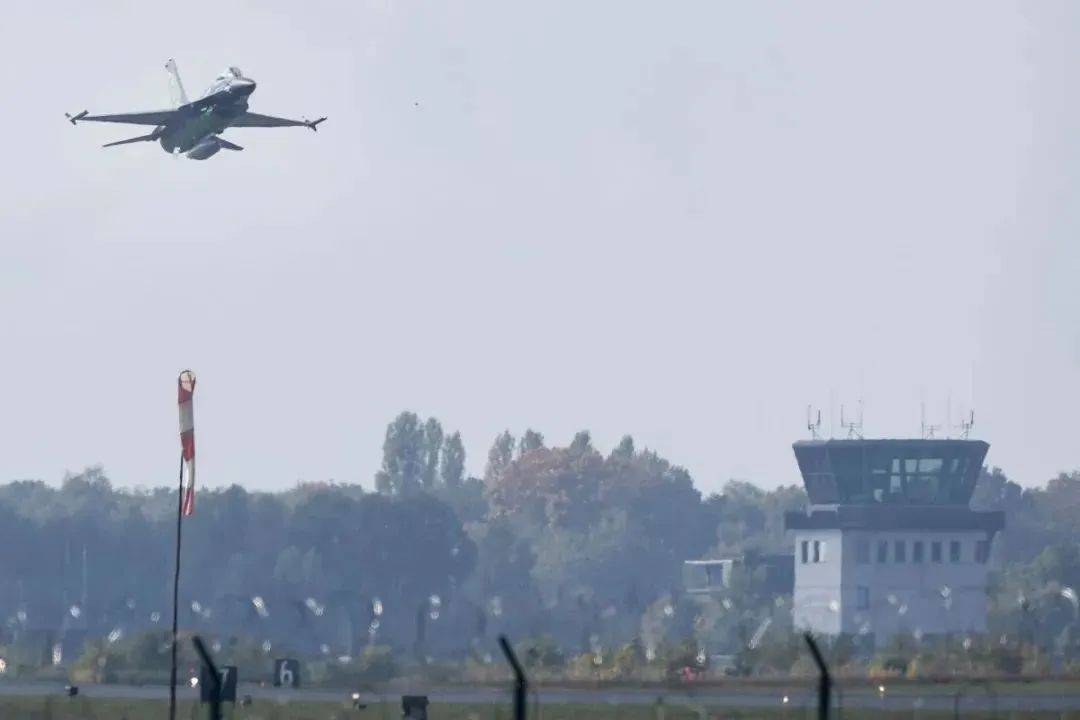 當地時間10月14日,一架比利時空軍的F-16戰鬥機在比利時參加“堅定正午”演習。(圖源:參考消息)