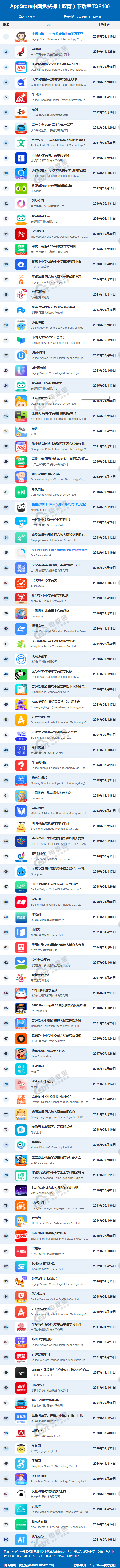 10月AppStore中國免費榜(教育)TOP100:小猿口算 作業幫前10_風聞