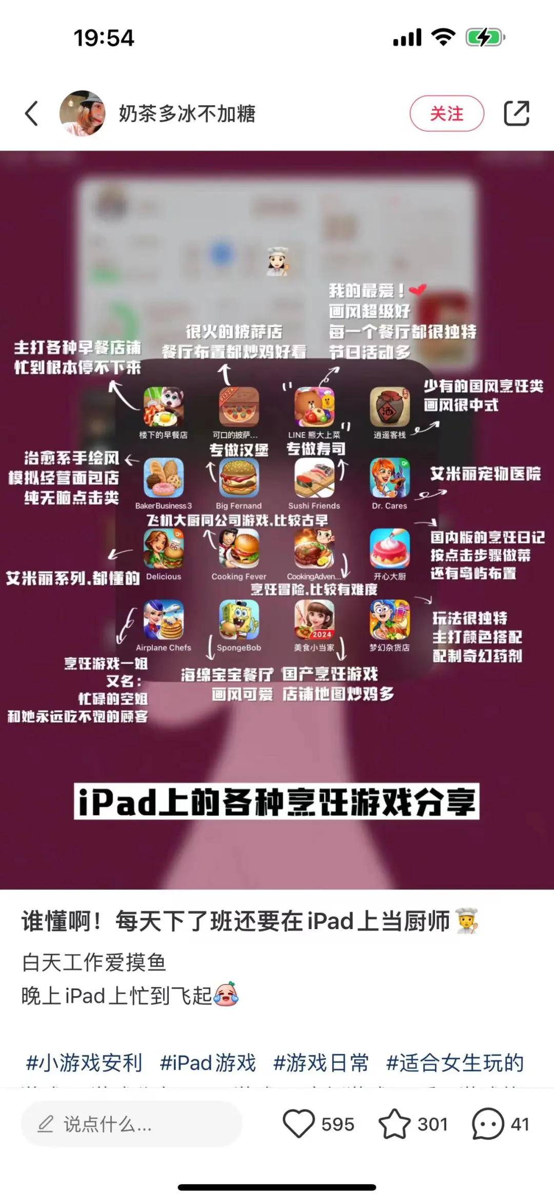 這麼説有點抽象,但在她的講述中,她就是對和“做飯”有關的小遊戲天然有熱愛,雖然這些遊戲的玩法都大同小異,雖然她自己並不會做飯,但她很愛嘗試做飯小遊戲,就和喜歡看做飯節目和美食視頻一樣,不過至少做飯小遊戲裏她真的動手“做”了。