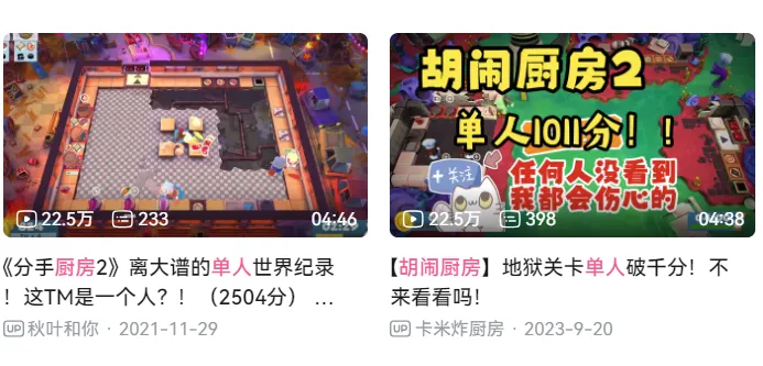 在B站上,搜索“沙威瑪傳奇”跳出的視頻裏,就有播放量超過百萬的《沙威瑪傳奇》高難實況,行雲流水般的操作,高到可怕的APM,同時還對操作順序和準確率要求極高,雖然在大眾眼裏,做飯小遊戲都屬於“休閒遊戲”,但做飯小遊戲對腦力和手速的要求,實際上一點都不“休閒”。