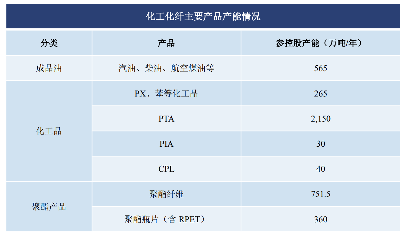 根據恆逸石化2023年的年報,公司煉化設計產能 800萬噸,PTA 參控股產能 2150 萬噸,參控股聚合產能 1111.5 萬噸,己內酰胺參股產能 40萬噸。