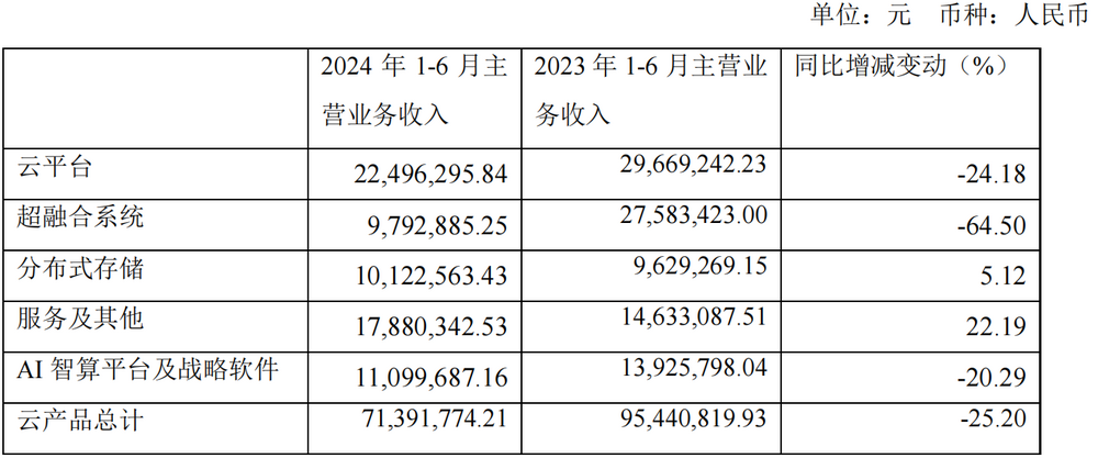 但時隔一年,青雲科技的新增長曲線卻出現了下滑跡象。2024年上半年,青雲科技的AI算力服務收入為2359.51萬元,同比下降10.98%,而AI智算平台及戰略軟件收入為1109.97萬元,同比下降20.29%。