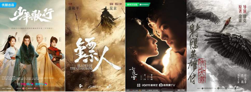 得益於以上諸多劇集的成功,就算今年多部武俠劇不及市場預期,甚至口碑與收視雙撲,但武俠劇N代和新武俠劇仍在立項、開機的路上。騰訊視頻出品的《赴山海》,任雪濤執導,成毅、古力娜扎主演,改編自温瑞安的《神州奇俠》;愛奇藝出品的《雲襄傳之將近酒》是《雲襄傳》的劇集,由第一部的陳曉&毛曉彤再度合作;優酷出品的《暗河傳》,則改編自周木楠的同名小説,他的《少年歌行》系列已經被市場所驗證,再加上龔俊的出演,或可複製《少年歌行》的成功。電影方面,絕大多數武俠已經只能成為網大,吸引行業和觀眾視線的院線電影,有且只有一部,即徐克執導,肖戰、莊達菲主演的《射鵰英雄傳之俠之大者》。老牌武俠導演+新生代頂流的組合,或可為《射鵰英雄傳》這一頂級IP再添新光。而在武俠+院線電影方面,也是有且只有一部,即根據同名漫畫改編,袁和平執導,吳京、謝霆鋒、李連杰等人主演的《鏢人》。