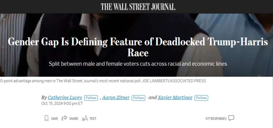 新聞説,特朗普和哈里斯之所以陷入選舉僵局是因為性別的問題。