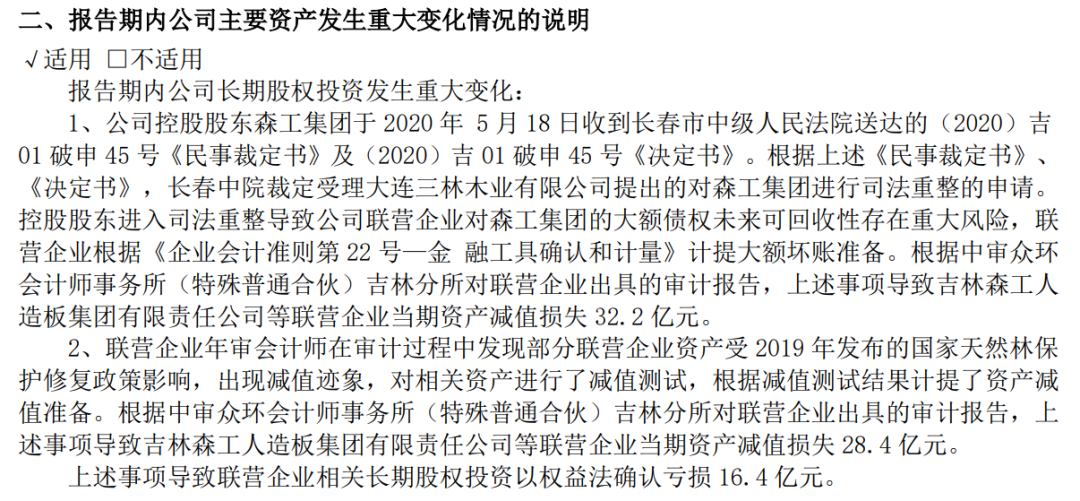 公司聯營企業對森工集團的大額債權未來可回收性存在重大風險。