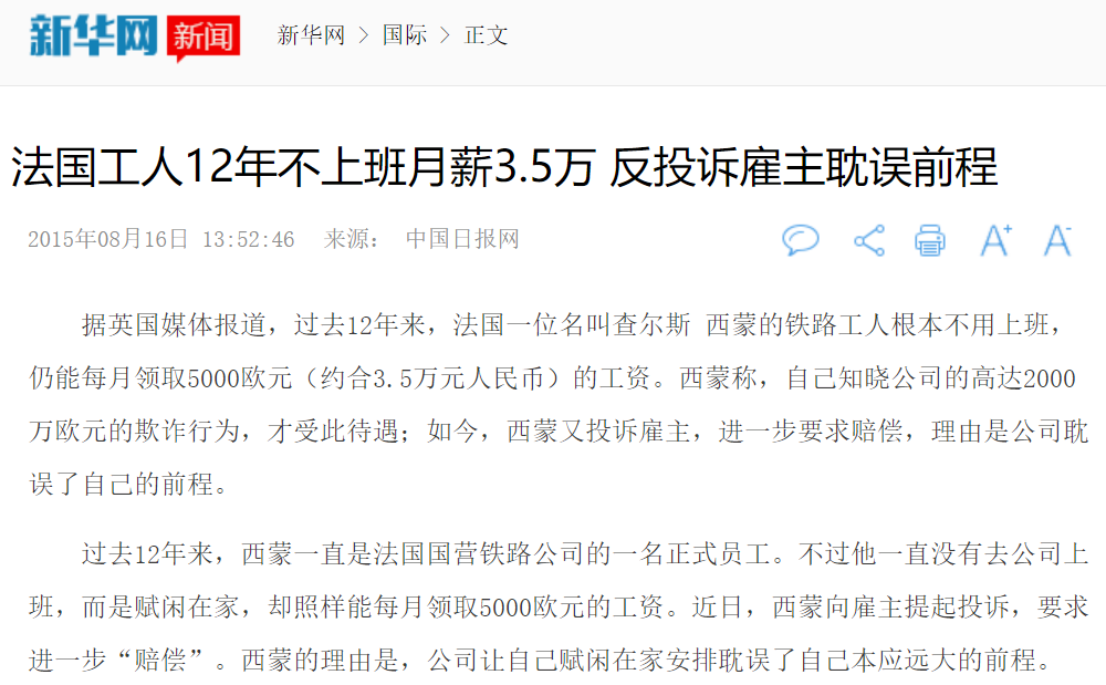 只是這位法蘭西的同志仍不滿足,向僱主提起投訴,要求進一步“賠償”。他的理由是: