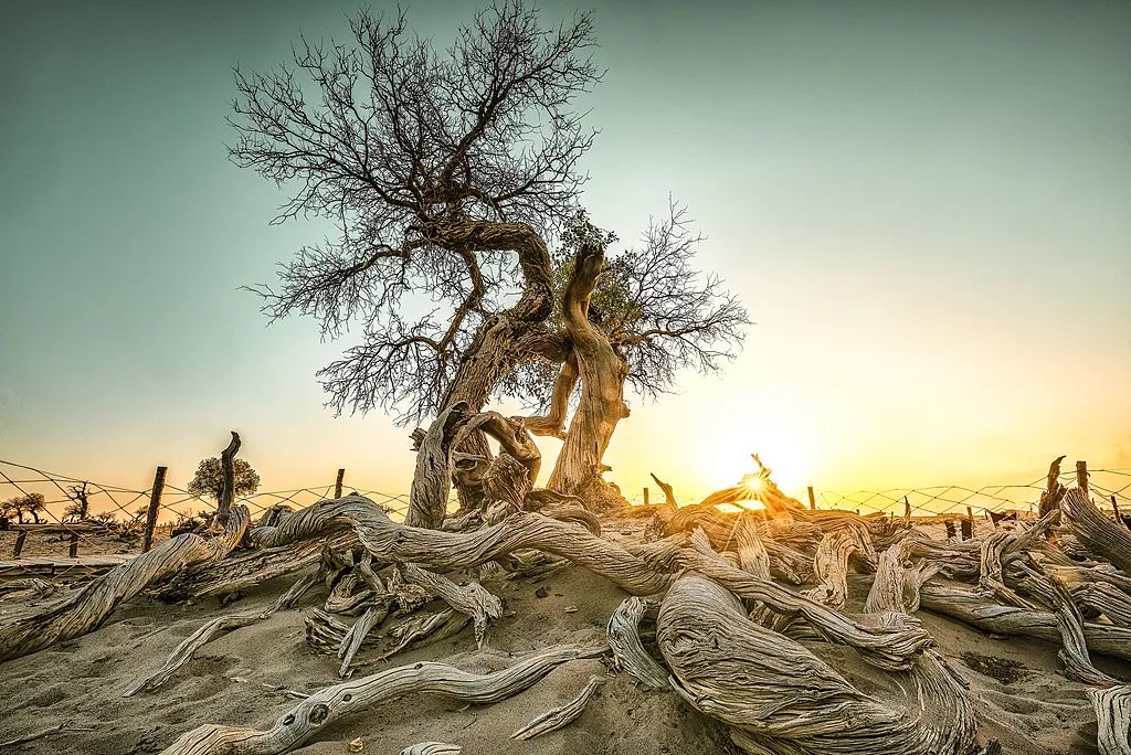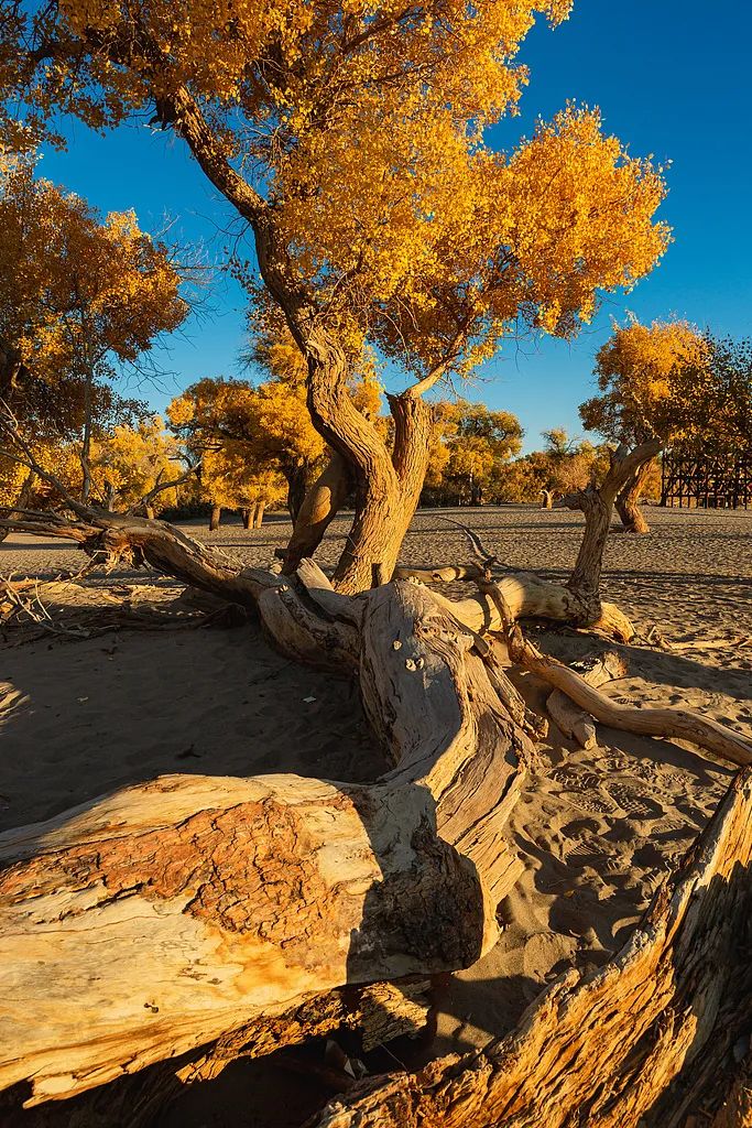 首先,胡楊龐大的根系,以便它在沙漠中汲取水源。