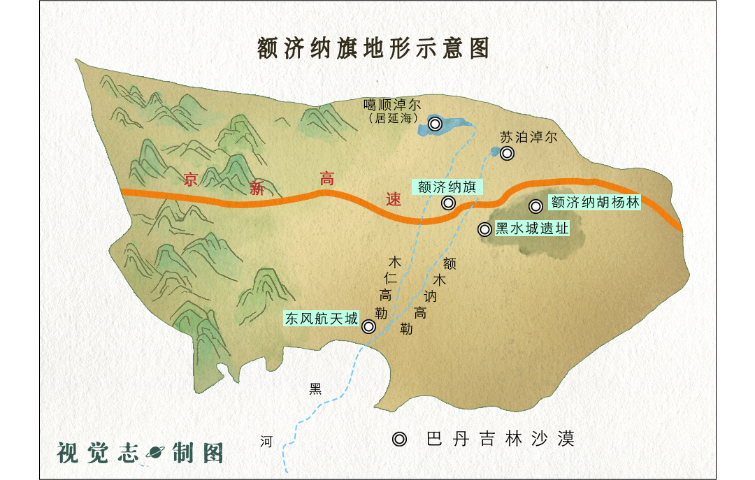 除了居延,“瀚海”、“大漠、“流沙”都是它的別稱,額濟納旗正是中國古代詩歌中所説的邊塞。