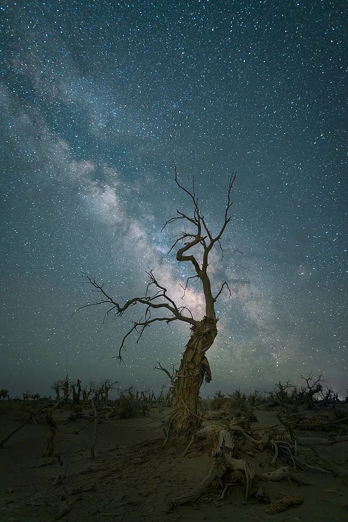 銀河與星空下的胡楊