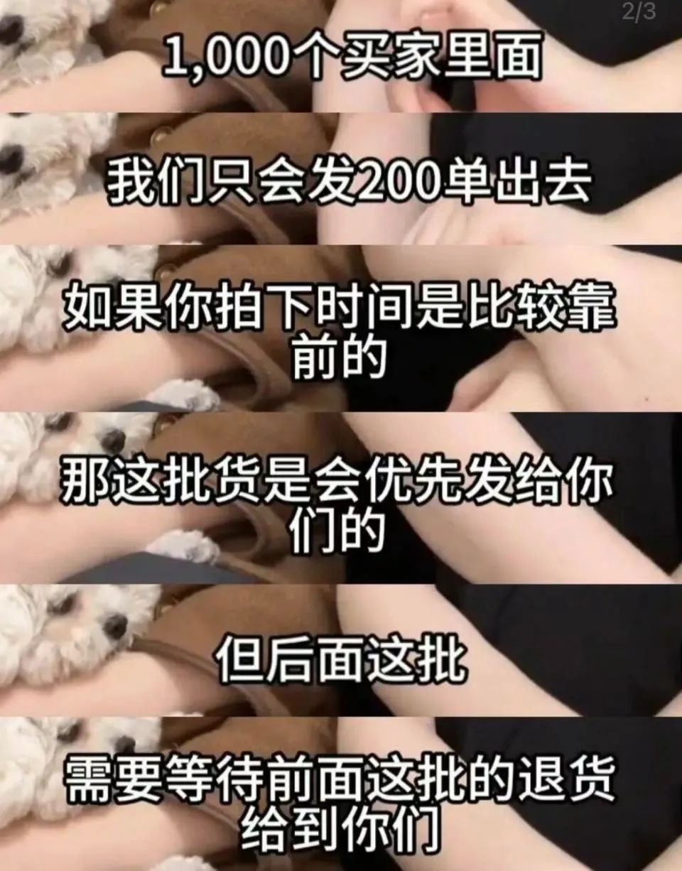 所以,消費者看到的庫存現貨,其實都是商家虛標的數字,比如一場直播某個單品賣了1000件,商家會按照50%的折中退貨率只備貨500件,往往第30天的還沒發貨,第5天那一批的訂單已經被退回來了。