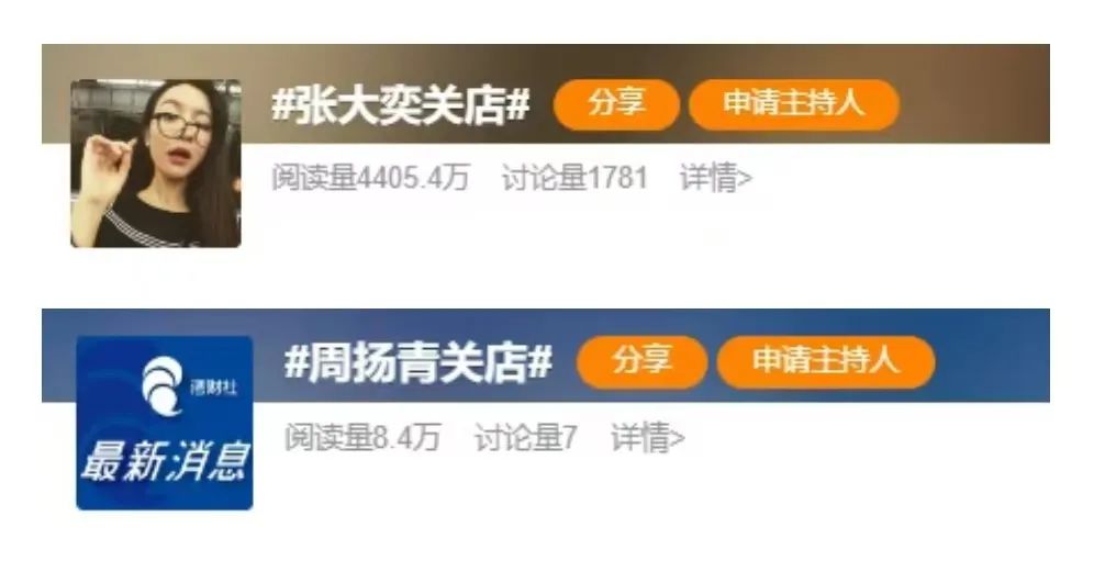 就在最近,網紅周揚青發布淘寶女裝店全場清倉通告,稱“因適應市場環境及公司戰略方向的改變,決定進行業務調整”;無獨有偶,網紅張大奕也在微博發佈長文,宣佈“吾歡喜的衣櫥”在內的3家淘寶女裝店無限期延遲上新,透露因退貨高、成本大和利潤薄等原因被迫閉店,而其巔峯時期,一年銷售額達3個億。