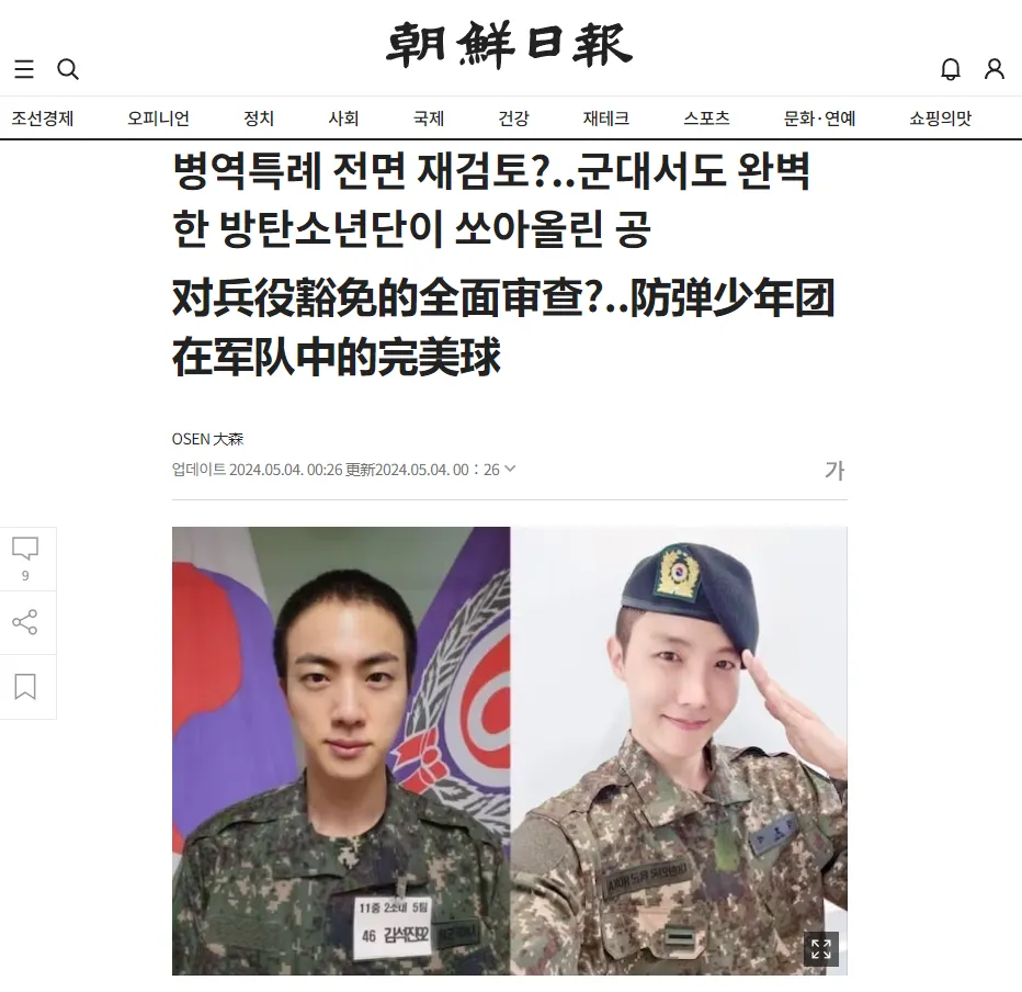 所以,從理論上講,如果期間朝韓兩國有個萬一,鬧到最後要兵戎相見,那麼防彈少年團搞不好還真有可能會被他們的韓軍長官派上前線,檢驗一下他們那享譽世界的“防彈”之名是否名副其實。