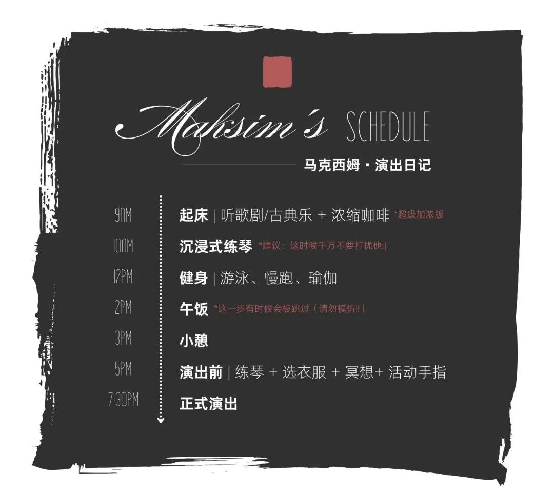 “聲波、三角波、阿爾法波佐以柔和的人聲,引導着我的呼吸,”馬克西姆講述到,“呼吸是最重要的,它讓我放鬆大腦,不再那麼緊張。”此外,馬克西姆還提到了一個小細節,自己會用一種特質的面霜按摩雙手,讓手部肌肉儘可能地放鬆,為演出做好準備。