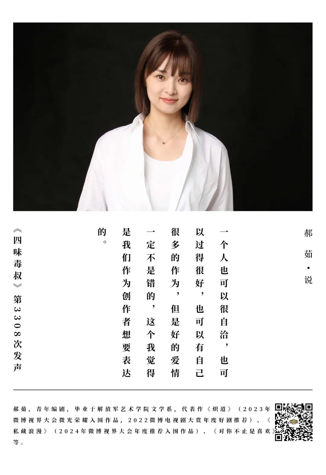 本期節目中,《四味毒叔》對話《私藏浪漫》的編劇郝茹、辛曉陽,深度解析現偶劇的創作難點與未來發展趨勢,分享從業道路上的心得體會,為青年編劇們答疑解惑。
