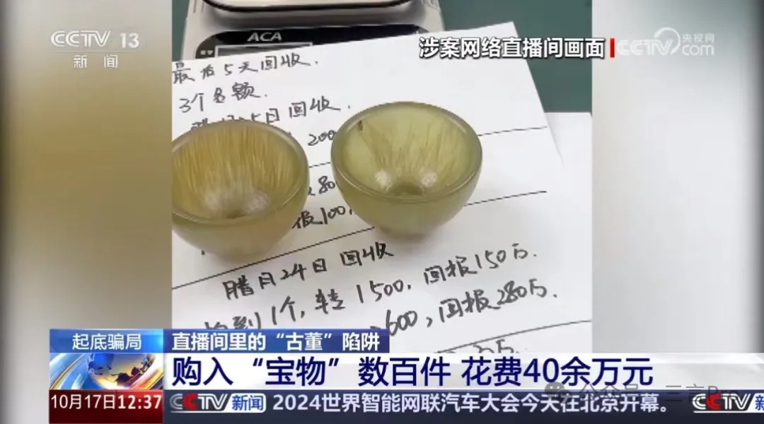 而這些假文物其實都是從批發市場買的,而直播間裏的價格、保管費用也都是隨口説的。