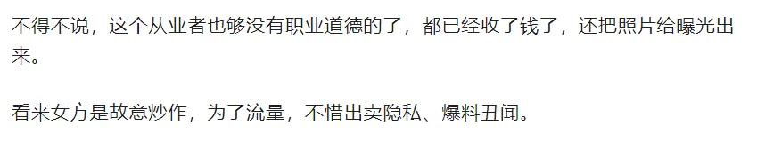 批評這個“從業者”,沒有職業道德,曝光客人隱私,“錢都收了還不把消息捂好”。