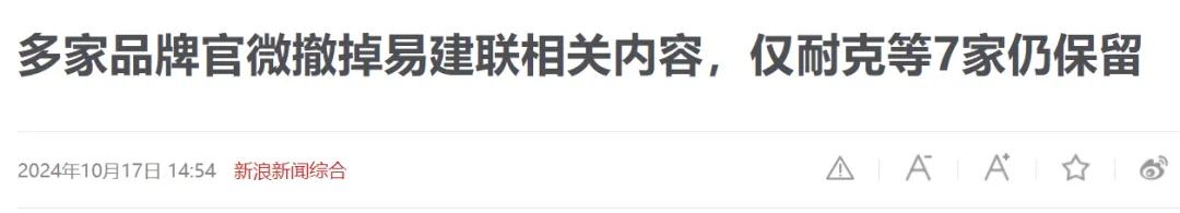 已有多家品牌官微在第一時間撤掉了易建聯的相關報道,包括但不限於中國人壽、廣發銀行、OPPO、上汽通用、君樂寶、TCL、夸克、白象食品等,只要少數仍然保留。