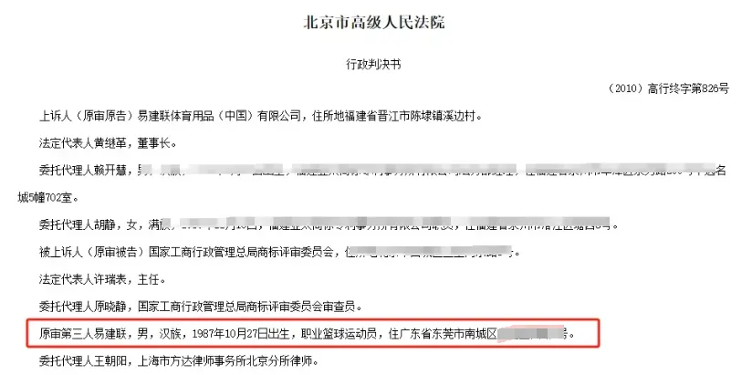 但是,根據中國裁判文書網曾經披露的,易建聯曾涉及的一份行政判決書。