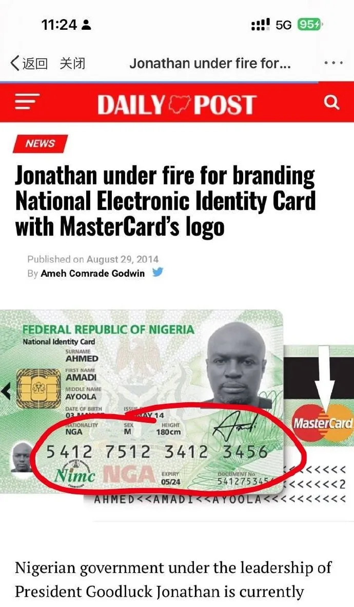 它來源於2014年的一條外文新聞報道裏,是尼日利亞推行電子身份證的相關配圖。