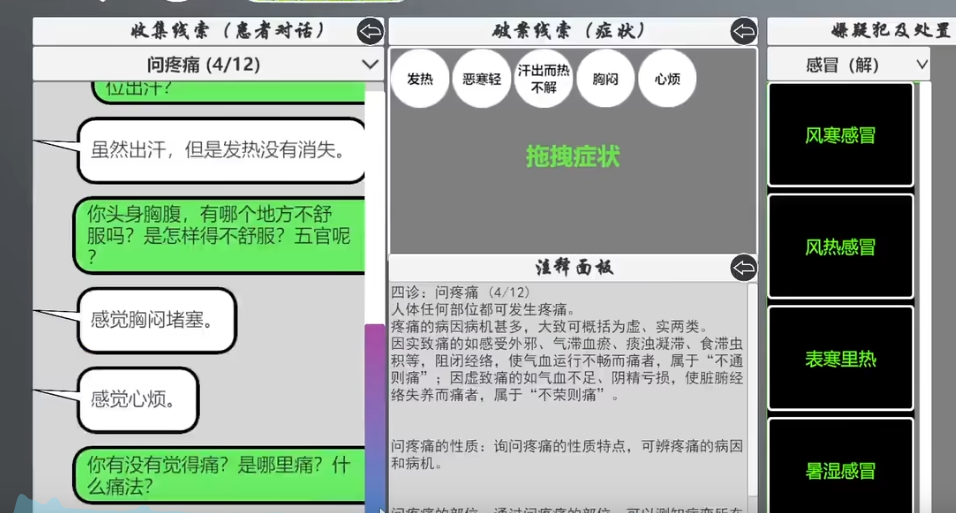 《中醫模擬器》發行的時候正值疫情,中醫受到廣泛關注。遊戲環節設置了患者對話,“破案“線索和證據蒐集對應,知識量方面也非常充足,作為一款科普中醫知識、傳播中醫文化的遊戲,在當時評價尚可。