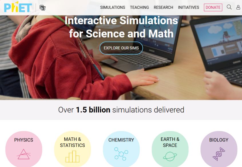 比如諾貝爾物理學獎得主卡爾·威曼(Carl Wieman)於2002年創立的一個免費在線物理、化學、生物、地理及數學交互性仿真程序平台PhET(Physics Education Technology),由科羅拉多大學團隊運營,旨在通過自由互動仿真程序,在世界範圍內提高人們的科學和數學素養。