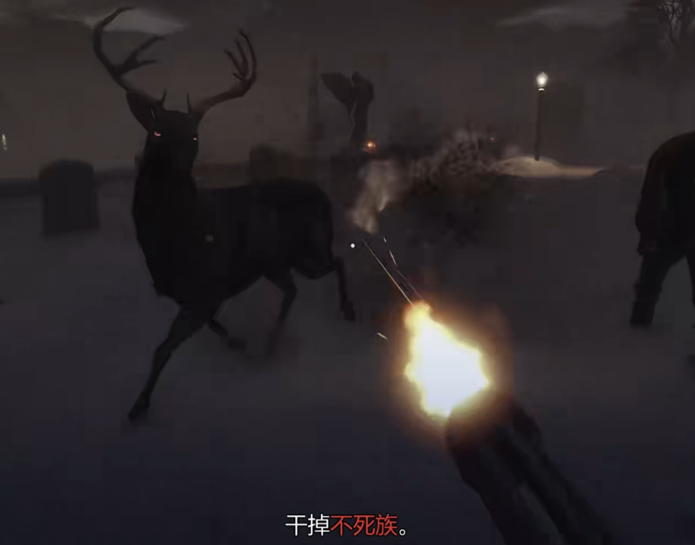 殭屍生存戰,就是將持槍的人類敵人換成了殭屍。除普通殭屍外,也有需要優先解決的特殊敵人,比如渾身着火企圖引燃玩家,或者會自爆的變種殭屍,滿地圖噴射毒霧的不死族法師,還有可能是從隔壁《荒野大鏢客:救贖》片場搬來的郊狼、野豬、馴鹿,橫衝直撞令人猝不及防,攻擊還能造成流血Debuff。