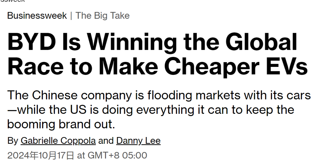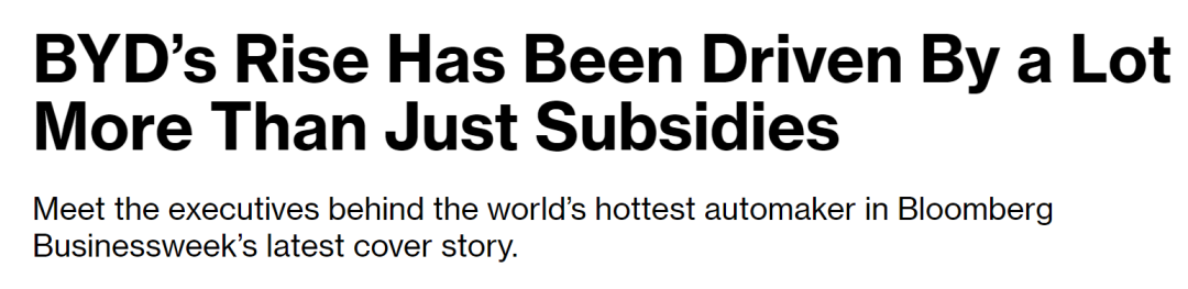 3)這種説法完全是顛倒黑白,甚至可以説是血口噴人。2024年10月17日,美國知名財經媒體彭博社旗下的“商業週刊”(Bussiness Week)在網站上發佈了一篇關於比亞迪的長篇深度報道,詳細講述了比亞迪成功背後的原因。彭博社網站在介紹這篇深度報道時強調,“推動比亞迪崛起的因素,絕不僅僅是補貼那麼簡單。”