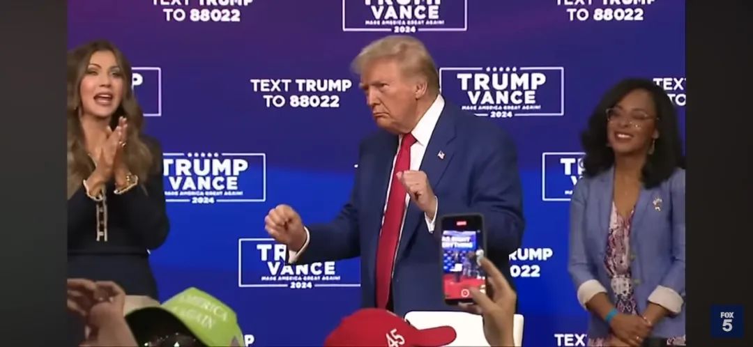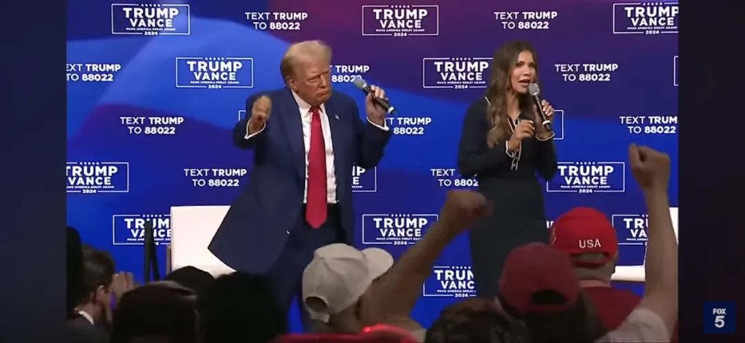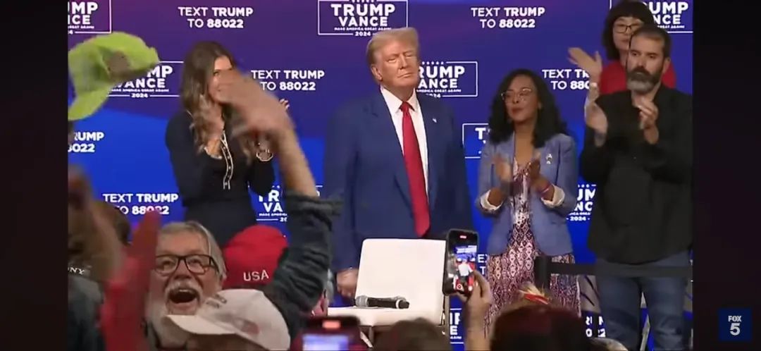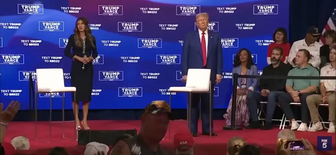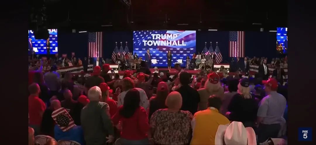 現場都是MAGA粉絲,本來就要支持特朗普。提的問題都是友好問題,答案也是大家都知道的。確實,那還有什麼可提的呢?還有什麼可答的呢?都是作秀罷了。那不如大家一起嗨皮嗨皮得了。聽聽音樂,活躍氣氛,拉近距離,給觀眾們留下一個“特別的記憶”。