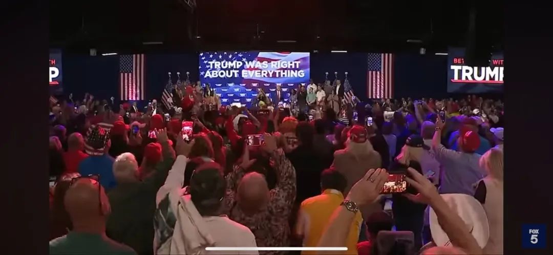 其實,這就是特朗普想要的。集會里,他反覆提到,新的民調數據很好,形勢一片大好!特朗普已經有點勝券在握的樣子了。他似乎在提前慶祝。
