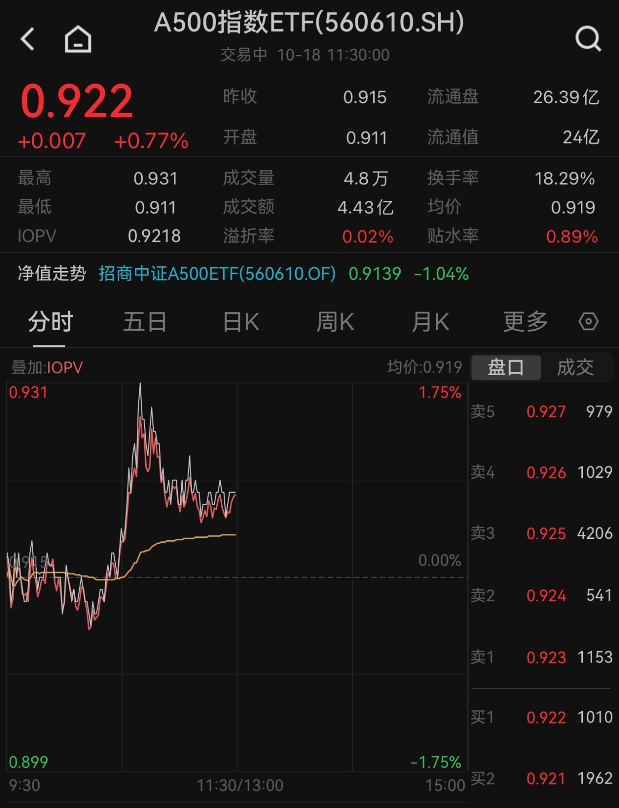 據瞭解,10月17日,A500指數ETF(560610)盤中成交額達7.50億元,在上交所同類成交額中排名第一,高達32.79%的換手率同樣名列前茅,今日早盤成交額4.43億元依然領跑滬市同類。(數據來源:Wind)