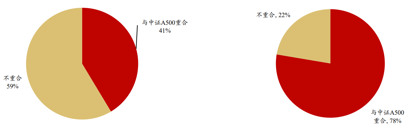 圖:滬深300(左)、中證500(右)與A500成分股重合度