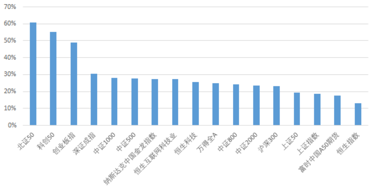 其中,上證50選取的是滬市規模最大的50只股票、滬深300是滬深兩市最大的300只股票、中證500是滬深兩市規模排名第301-800的股票、中證1000選的是滬深兩市規模排名第801-1800的股票;創業板指則是選取創業板市場最大的100只股票,科創50是科創板市場最大的50只股票。