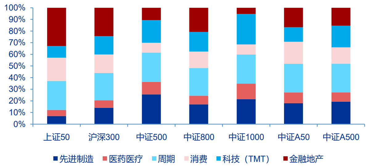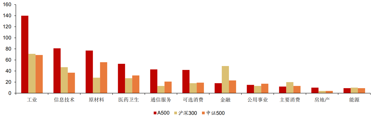 圖:A500、滬深300、中證500主要行業分佈數量