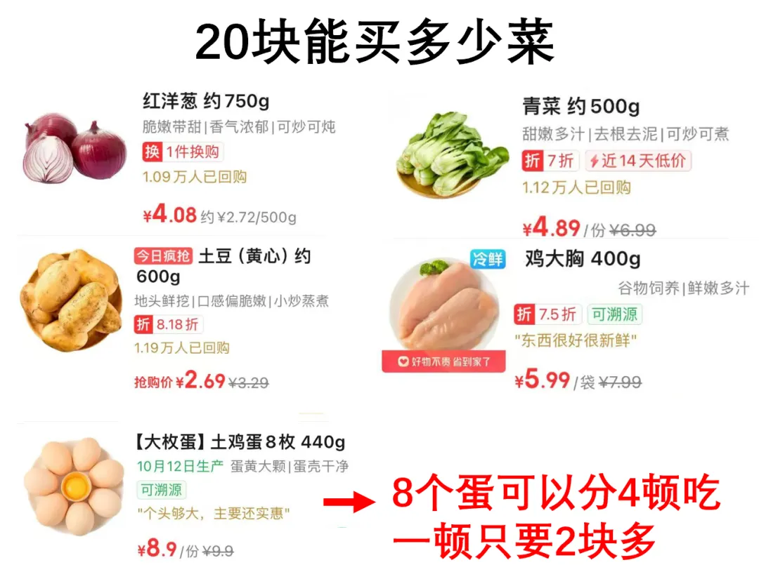 咱炒一盤洋葱炒土豆絲,一盤炒青菜,一盤煎雞胸肉,一碗蒸蛋,這不比你38塊的外賣健康。