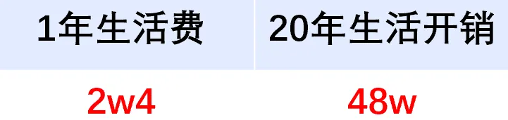 假如我們無病無災、love&peace活到80歲,就按一個月2000的生活費算,一年就是2w4,20年就是48w。